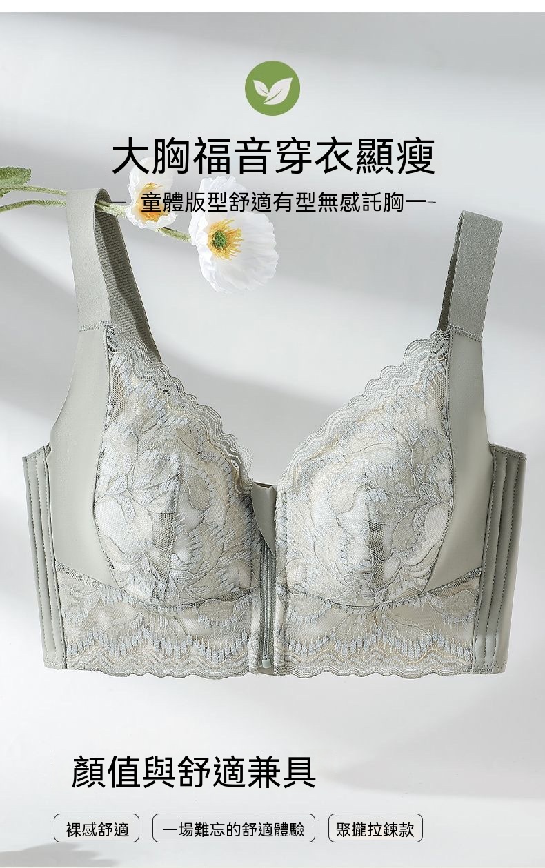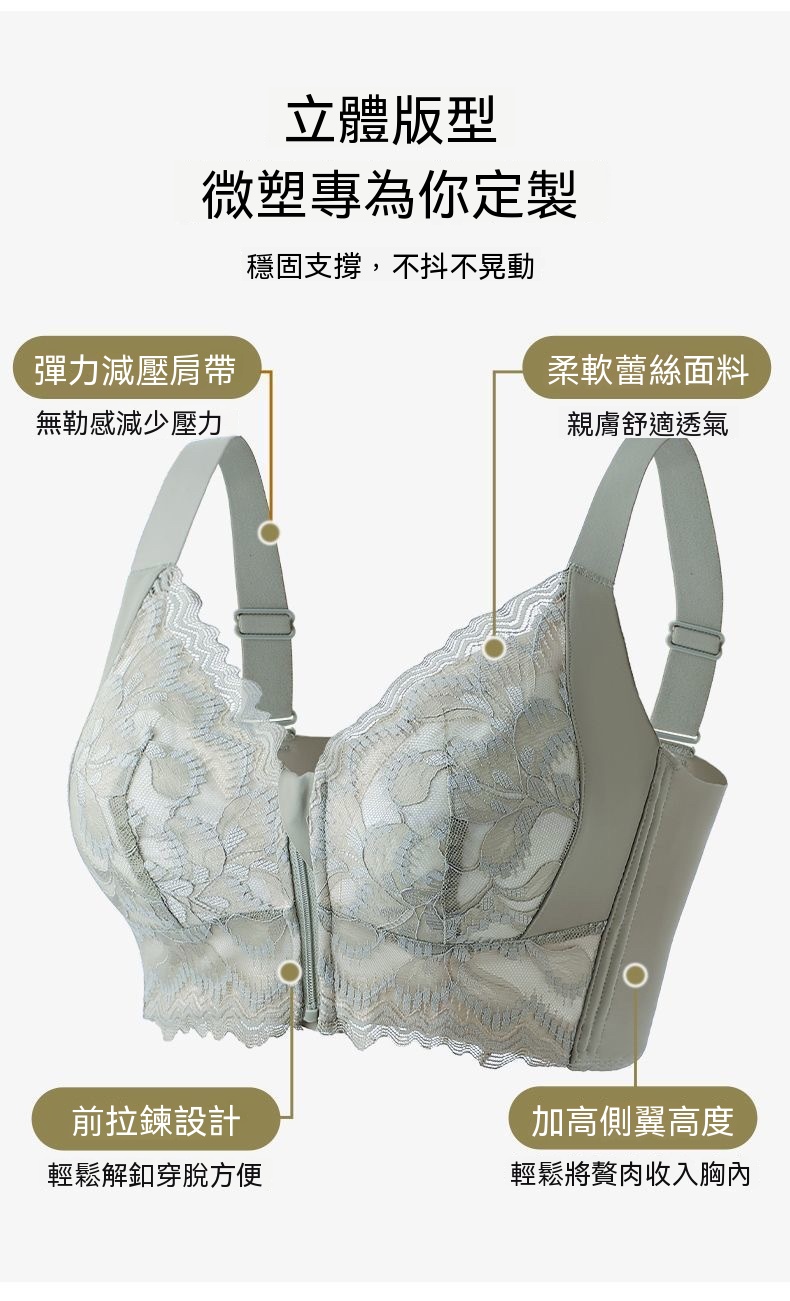 一拉即聚超省心!蓮花鏤空透氣美背,前拉鏈穿脫超方便,聚攏不壓胸,舒適又貼合