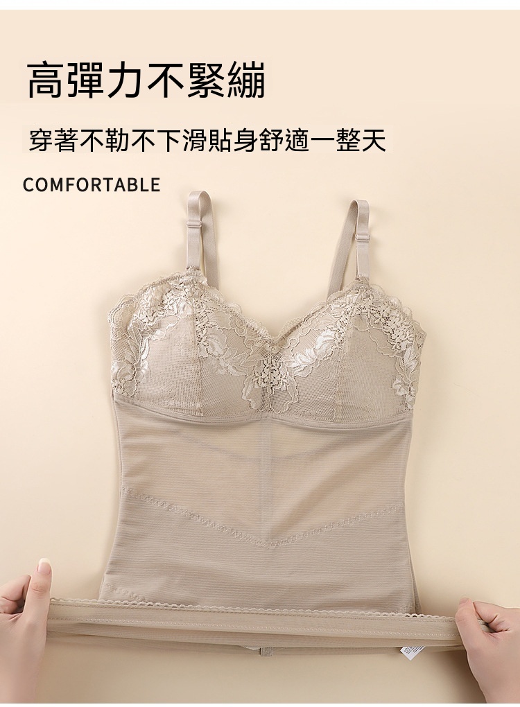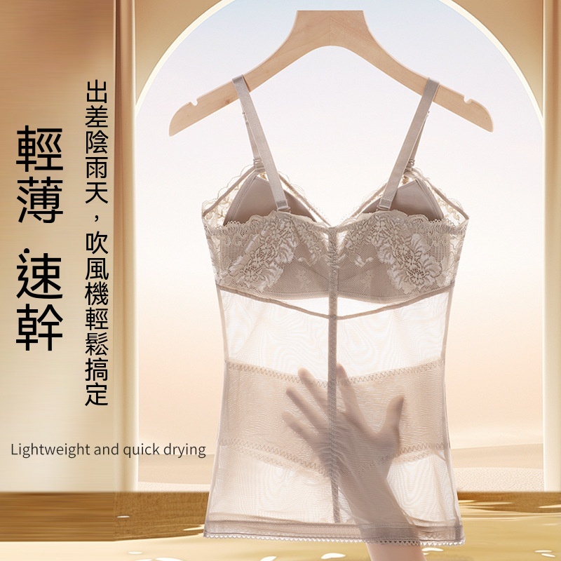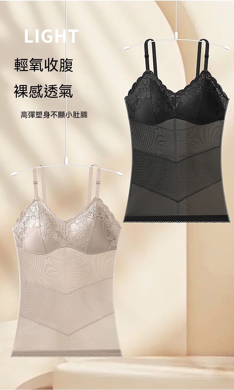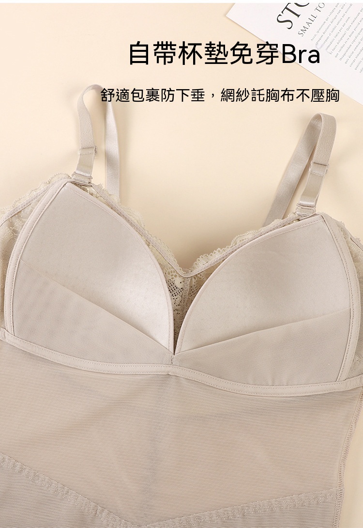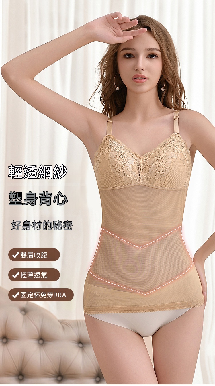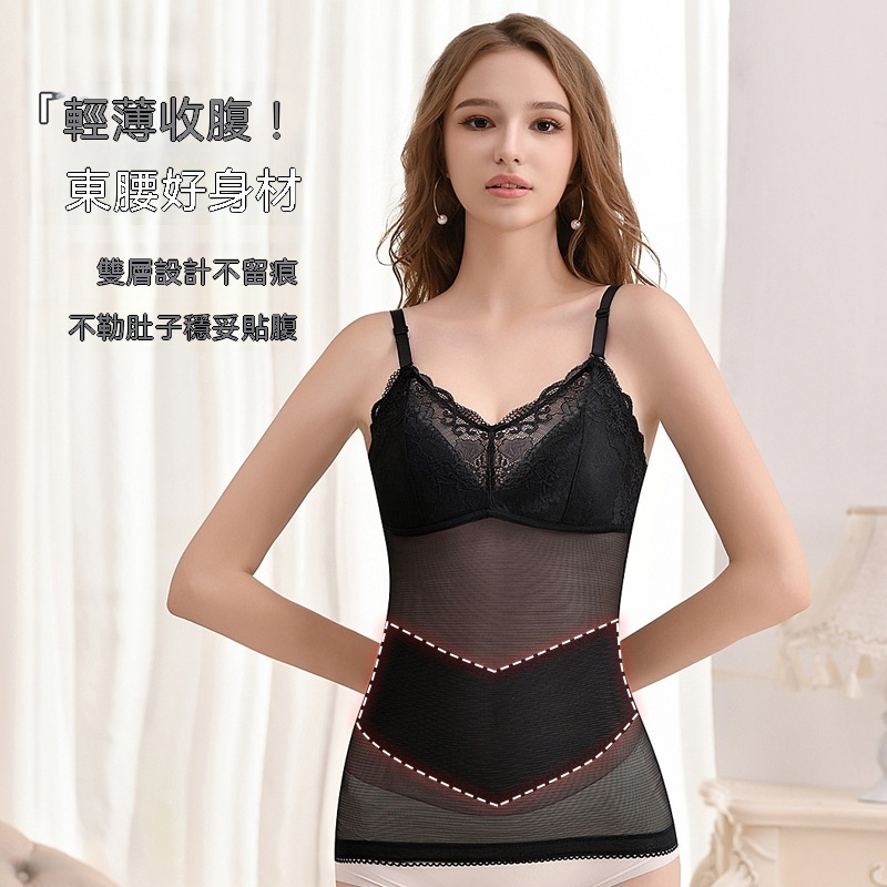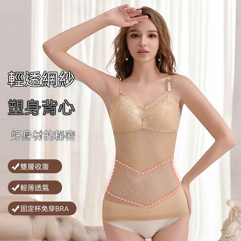 輕薄網紗透氣不悶,雙層收腹收腰,固定杯免穿 BRA,一穿就顯 S 曲線,日常穿搭都能藏住小肉肉