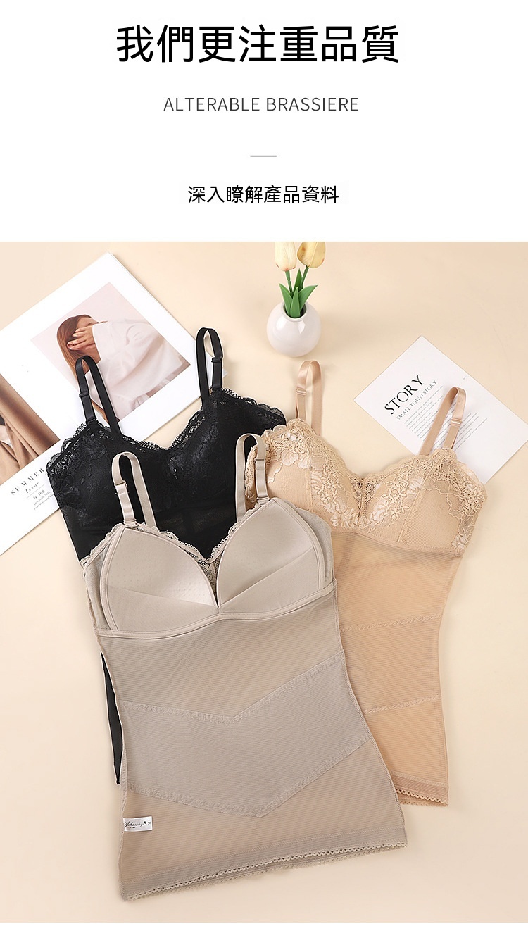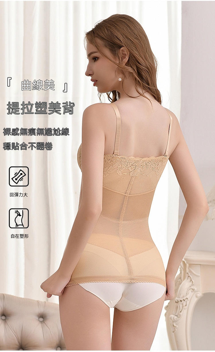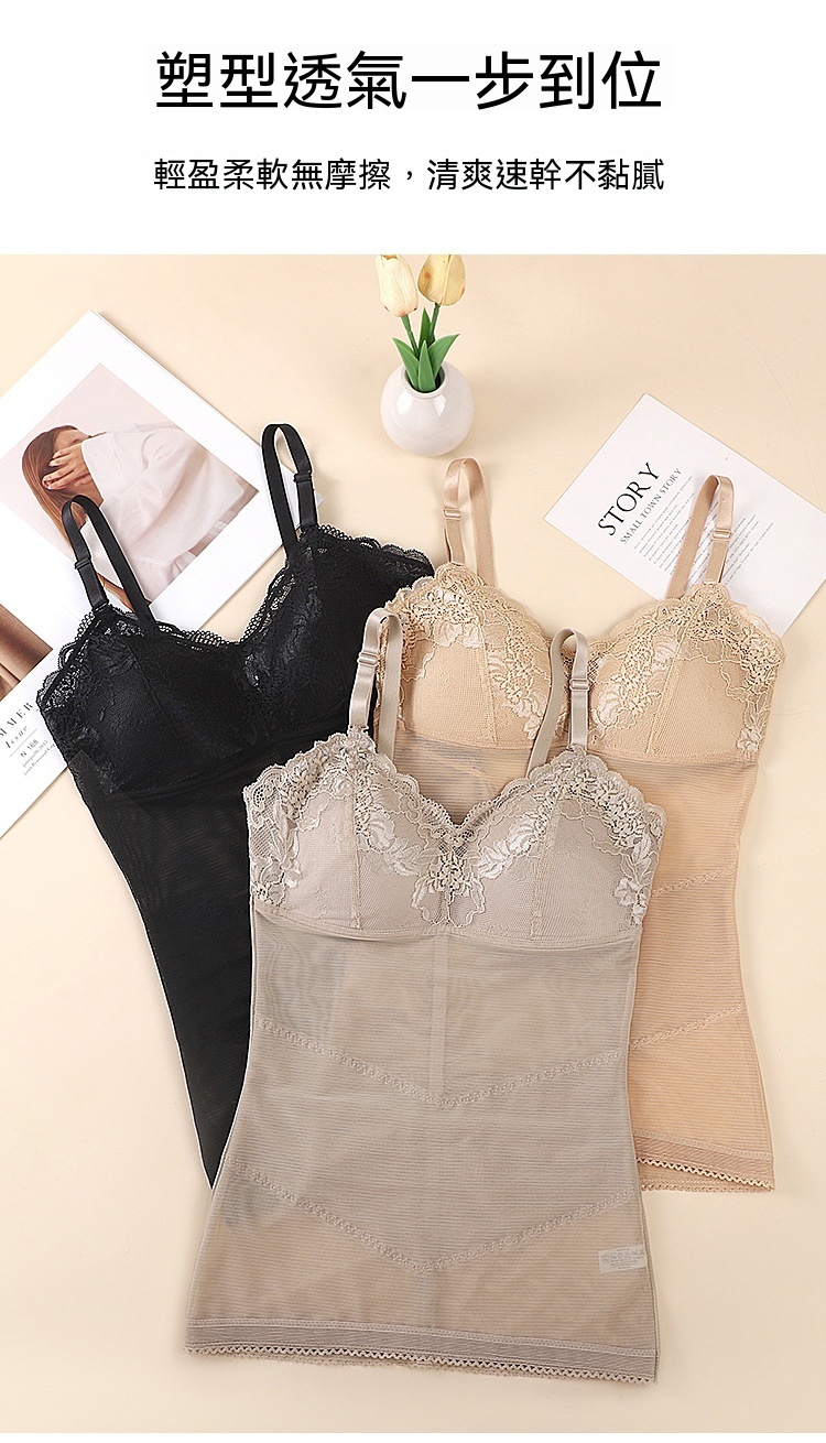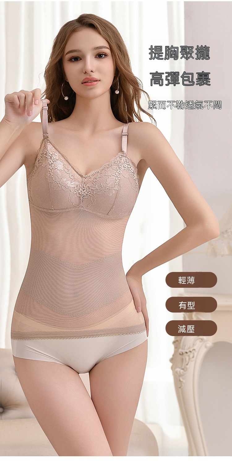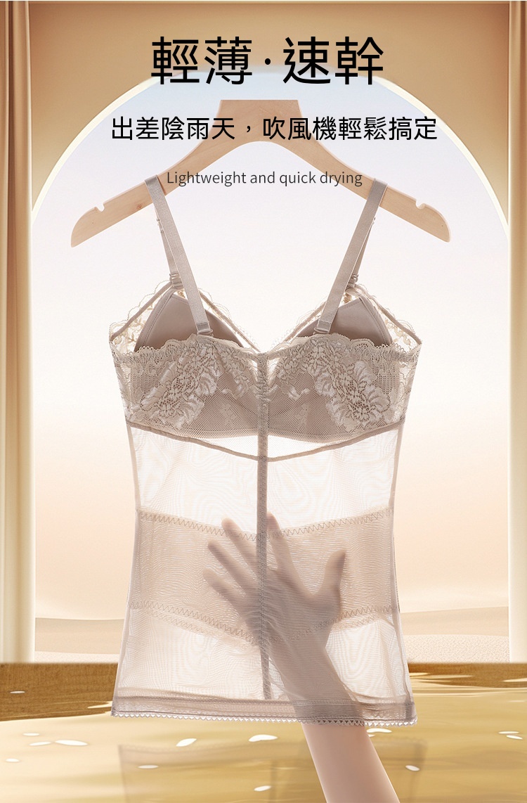 輕薄網紗透氣不悶,雙層收腹收腰,固定杯免穿 BRA,一穿就顯 S 曲線,日常穿搭都能藏住小肉肉