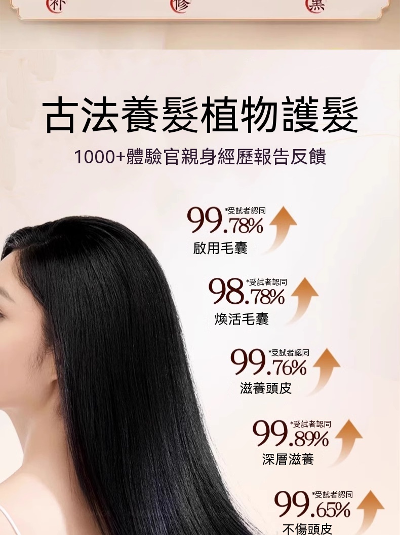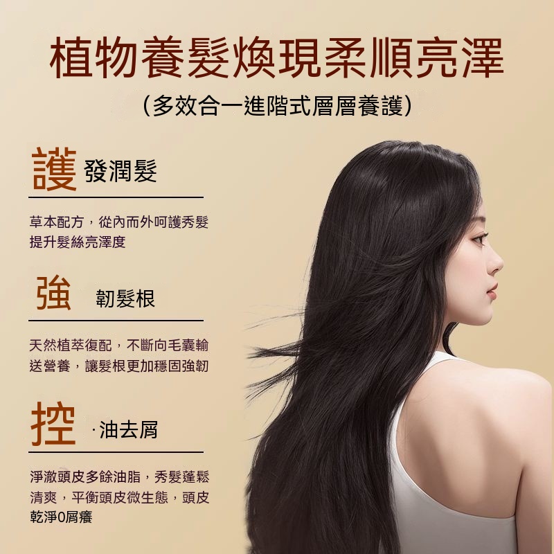 古法植萃養護秀髮,蟲草精華溫和不刺激,洗後蓬鬆柔順有光澤,多重植萃滋養頭皮